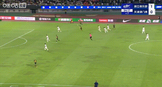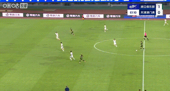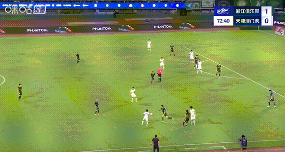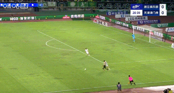 第90+5分钟,奥乌苏边路传中,弗兰克精彩凌空射门打进,浙江队2-0锁定胜局。