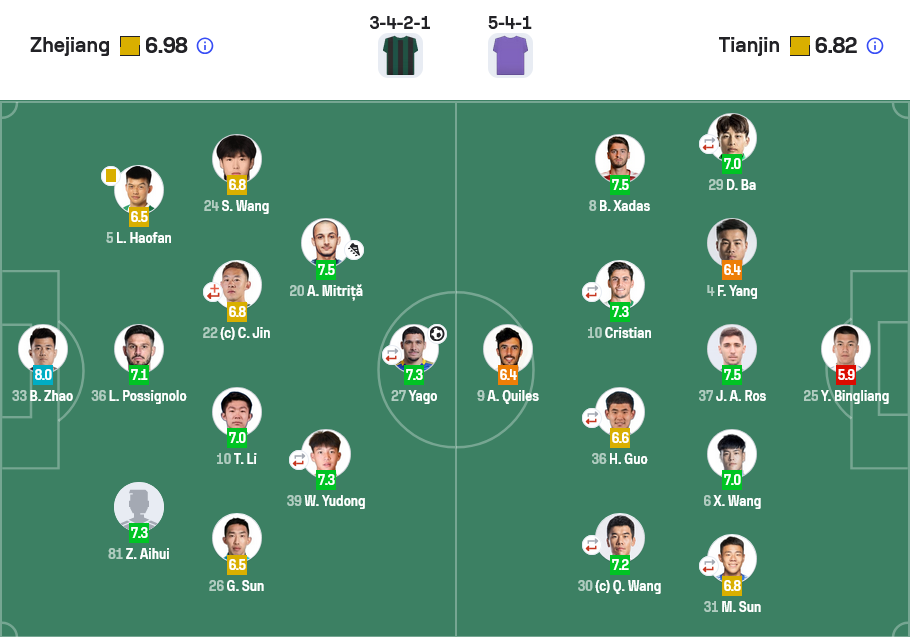 中场:26-孙国文、10-李提香、22-程进【80分,31-奥乌苏】、39-王钰栋【80分,11-弗兰克】